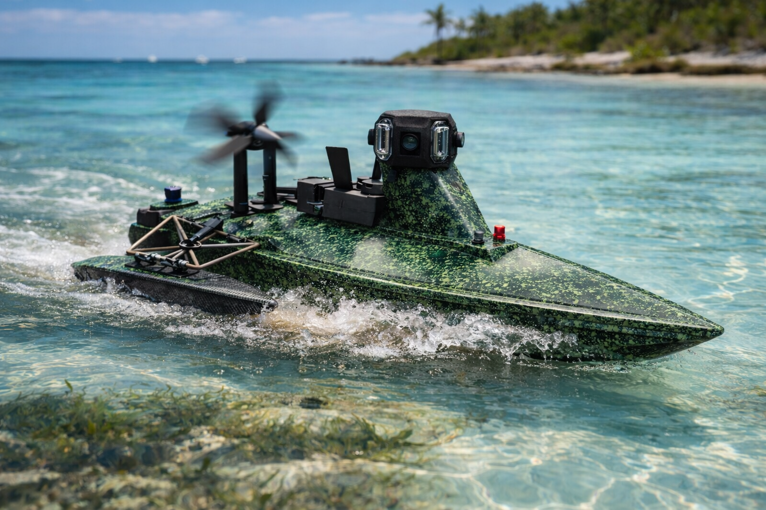 Autonomous USV configured to deploy the 360-ROV for nearshore missions.