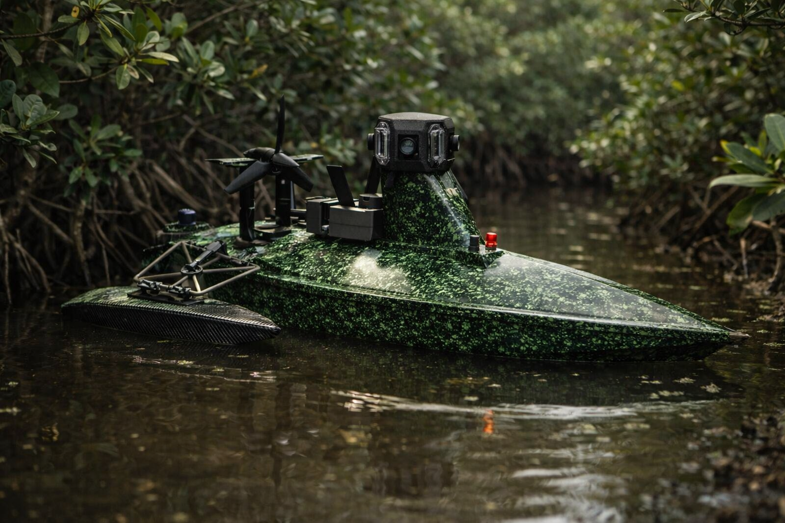 SWL Robotics delivers a fully integrated maritime intelligence ecosystem built around the FR10 carrier and recharge platform, the Tiburon unmanned surface vehicle, and advanced ROV sensing. Together they enable persistent surface presence, deep-water data collection, and continuous network connectivity, allowing operators to gather geo-referenced intelligence above and below the waterline and transmit it in real time. The result is longer endurance, expanded operational reach, and a unified picture of complex littoral environments without placing personnel at risk.
